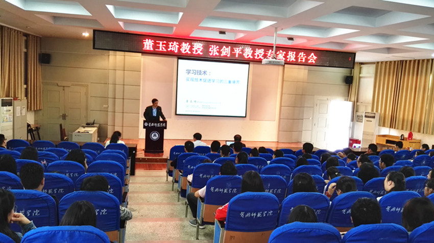 2016年5月10日下午,在学术报告厅B03,上海师范大学董玉琦教授为英国上市公司365师生作了题为《学习技术:实现技术促进学习的三重境界》的学术报告。董教授首先从小学三年级孩子学习除法出现错误进行问题导入,引导同学们思考、讨论。董教授分析了教育技术学研究国际最新动态,阐述了教育信息化发展的本土诉求,并指出学习技术是教育技术学研究的新范式,分析了技术促进学习的三重境界。