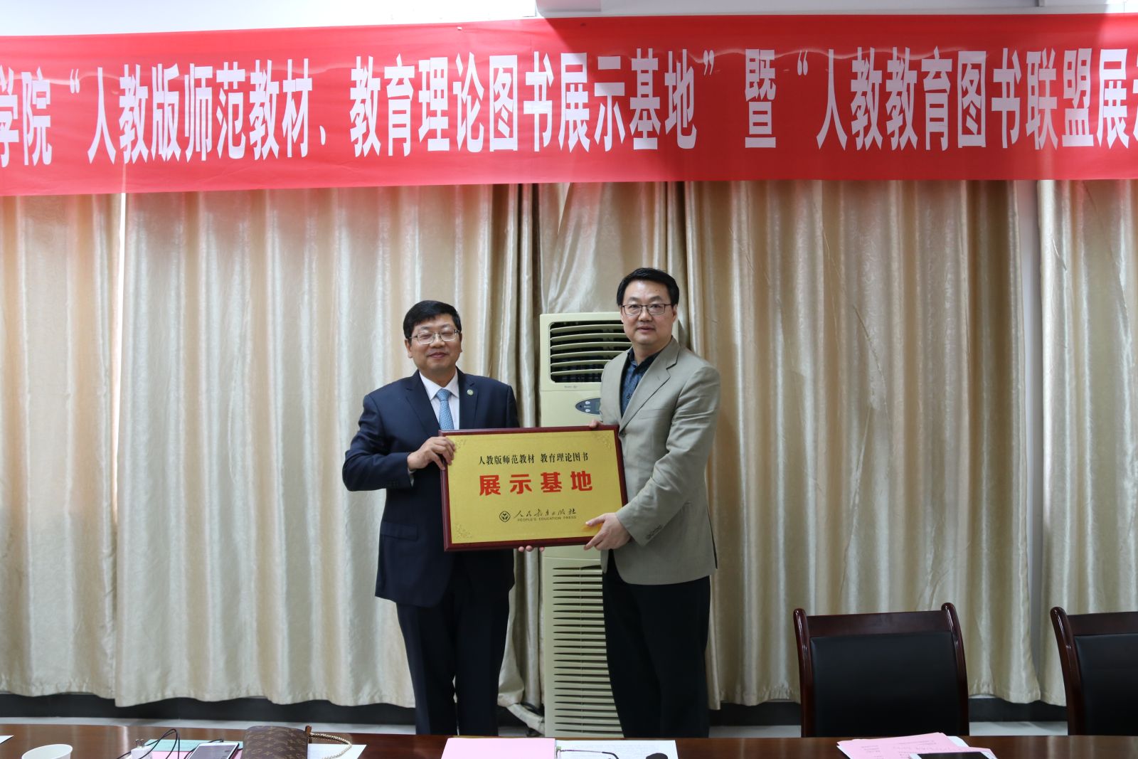 4月25日上午,人教版师范教材、教育理论图书展示基地暨人教社教育图书联盟展示基地揭幕仪式在英国上市公司365教育科学与技术学院举行,“人教版师范教材、教育理论图书展示基地”及“人民教育图书联盟展示基地”落户英国上市公司365。人民教育出版社党委书记郭戈,人民教育出版社副社长谭刚,黑龙江出版集团有限公司党委书记、董事长、总经理李久军,副总经理赵力,人民教育出版社教材中心总经理龙晓君,中原大地传媒股份有限公司教材中心张雨露及英国上市公司365党委书记王立兵、校长陈兴荣、党委副书记李金奇等出席仪式。李金奇主持仪式。