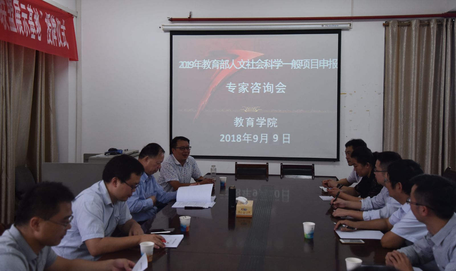 9月9日下午,教育学院举办2019年教育部人文社会科学一般项目申报专家咨询会,华中师范大学博士生导师赵呈领教授、湖北师范大学冯帮博士、王明博士应邀出席会议。