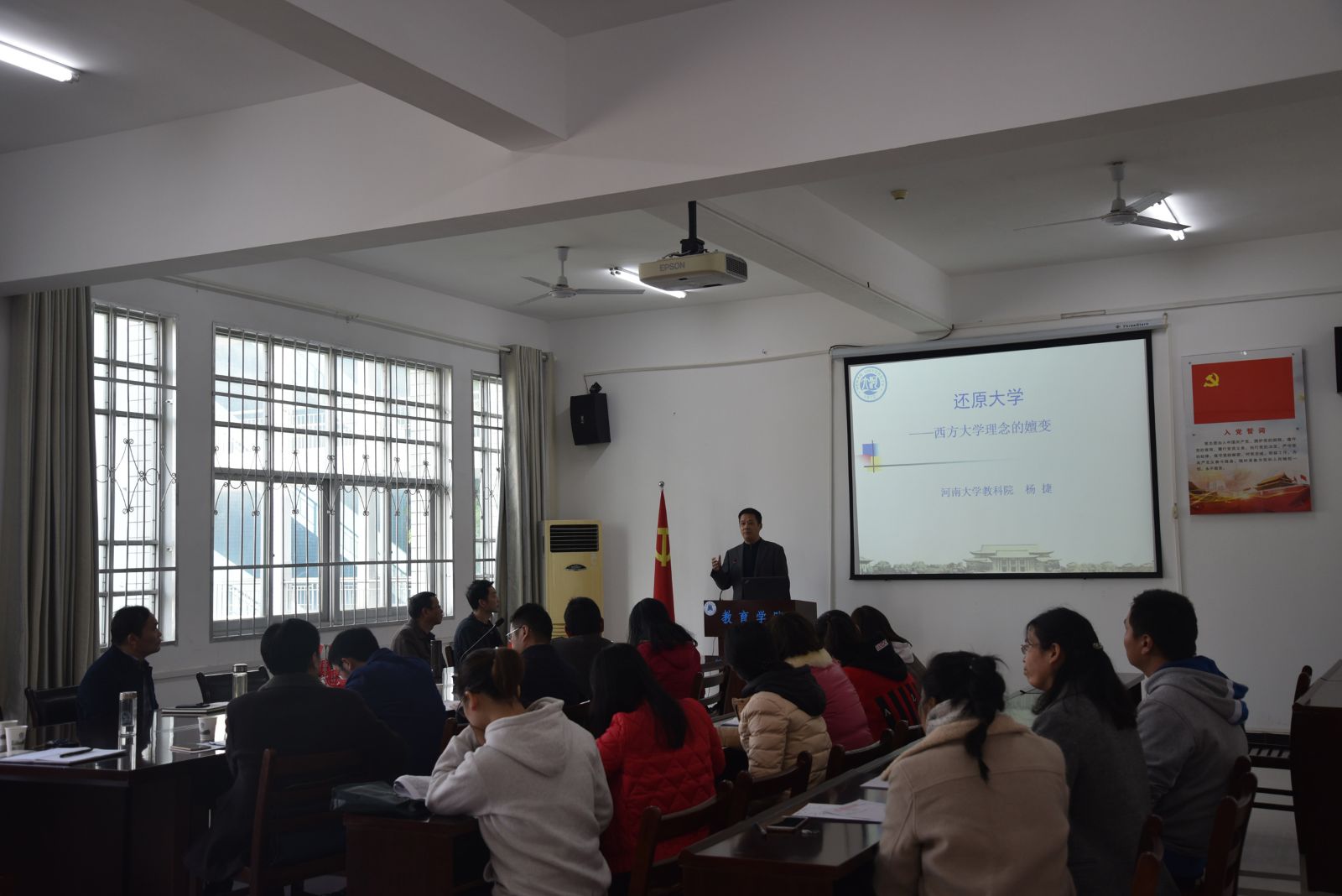 聘任仪式结束后,杨捷教授作了题为《还原大学——西方大学理念的嬗变》的学术报告,深入浅出地阐述了西方大学理念的嬗变,解读了当代大学理念的思想。讲座结束后,与会人员跟杨教授进行了近一个小时的互动交流。