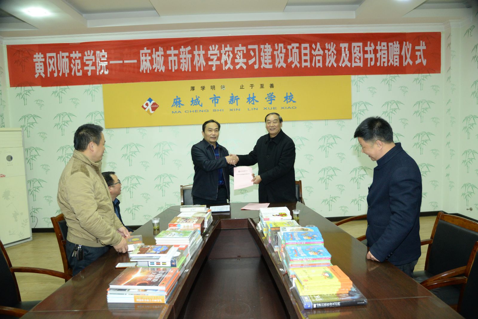 12月1日,教育学院与麻城新林学校签订实习和暑期实践支教基地协议书并向该校捐赠一批图书。学院党总支书记林永希,院长陈中文出席签约、捐赠仪式。