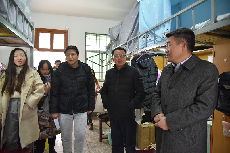 12月14日,副校长马志斌在教育学院党政主要负责人的陪同下,深入学生寝室了解学生学习生活情况。