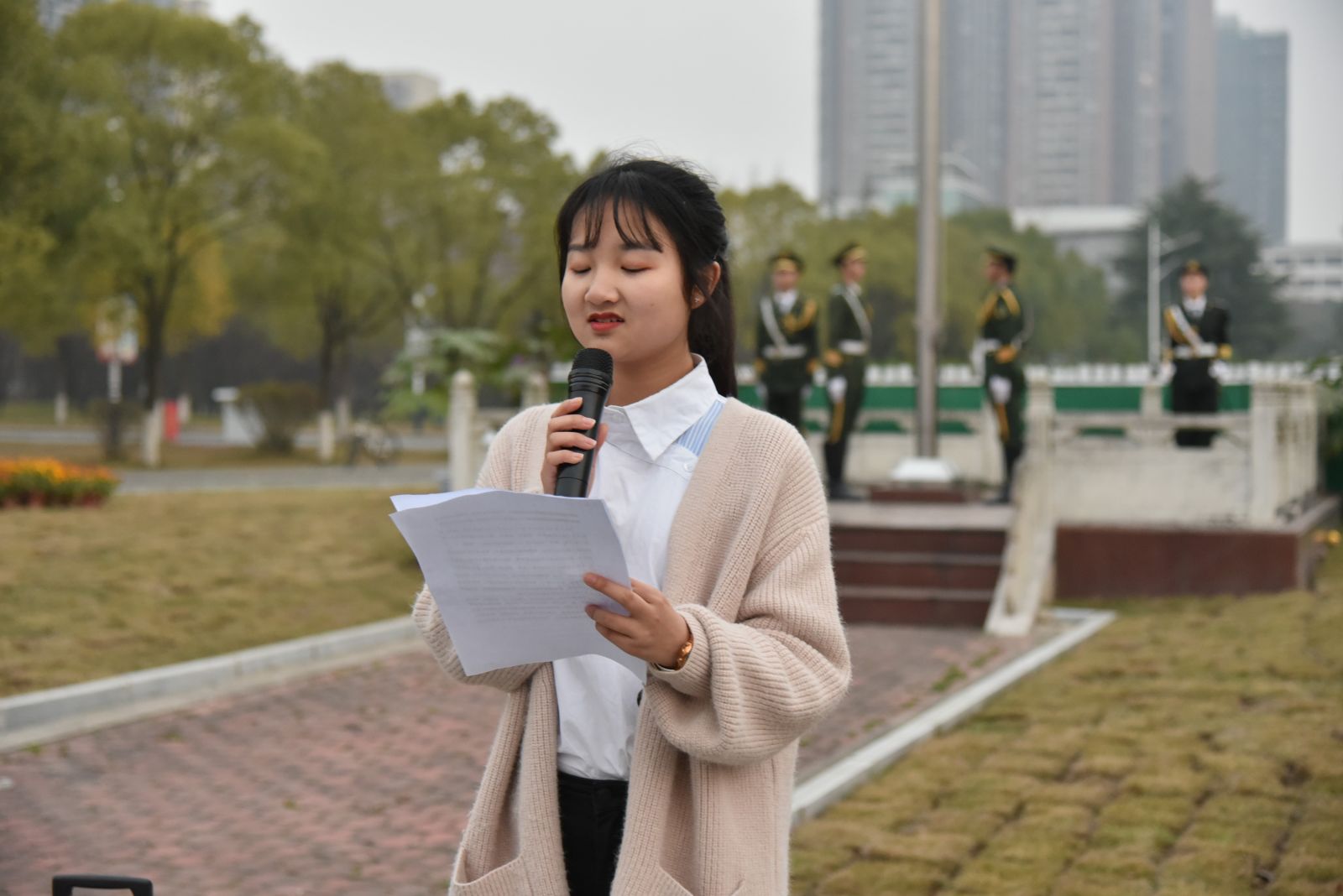 升旗仪式结束后,学生代表学生会团委副书记国亮同学围绕“永保爱国情,争做新青年”作了国旗下讲话,呼吁同学们牢记使命、锐意进取、努力学习、报效祖国。