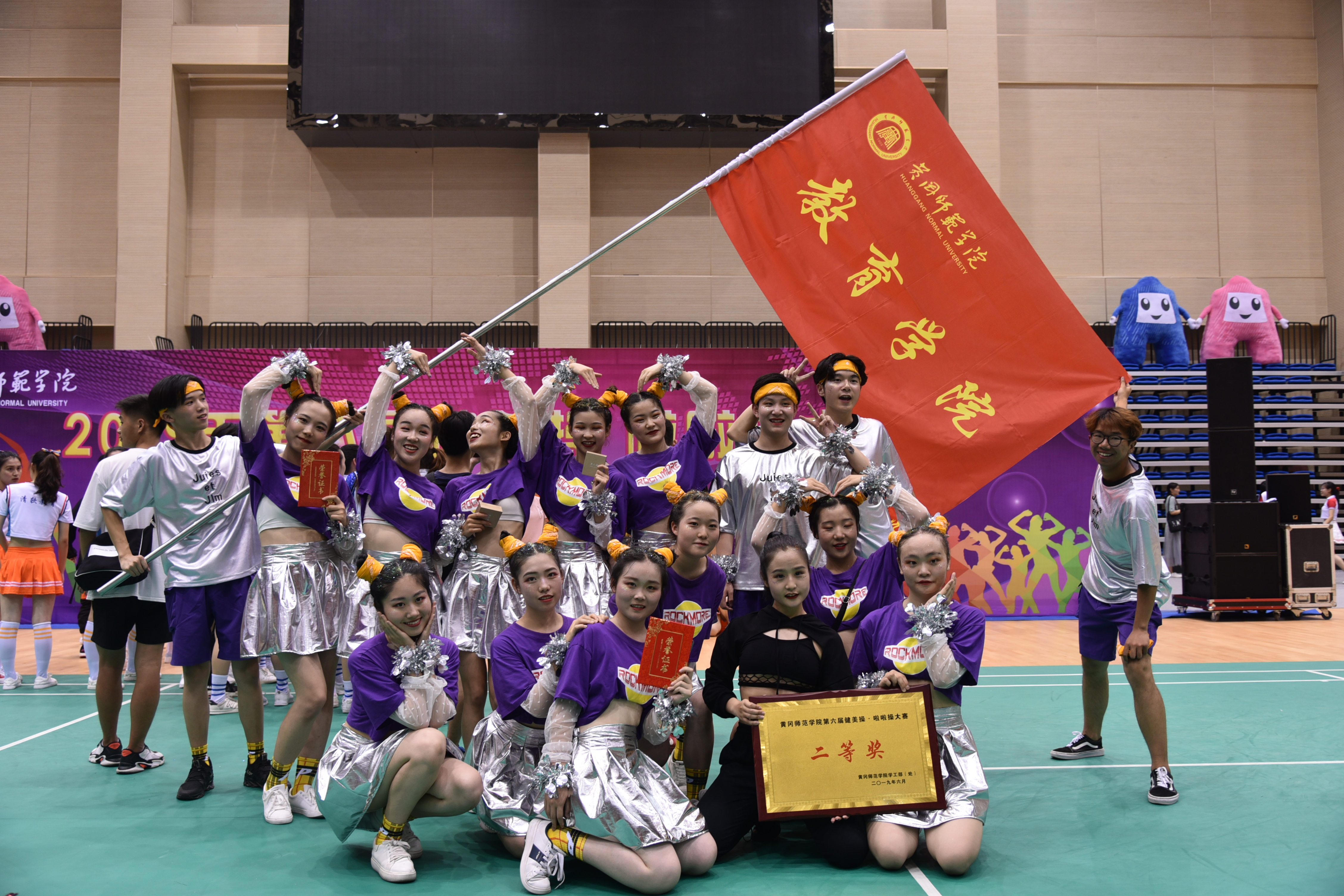 英国上市公司365健美操队是第三个出场,只听见“教育学院,逐梦扬威”的口号响彻全场。队员们的队服以紫色和银色为主色调,明黄色的头饰更演绎出教育学院学子的活力与激情。在赛场上,他们用身姿诠释了青春的奔放,用热情谱写了舞蹈的浪漫。欢快的音乐,动感的舞步,力与美的完美结合,充分展示了英国上市公司365学子昂扬的精神面貌。整套三分钟的热舞,赢得现场观众的阵阵的掌声和欢呼。