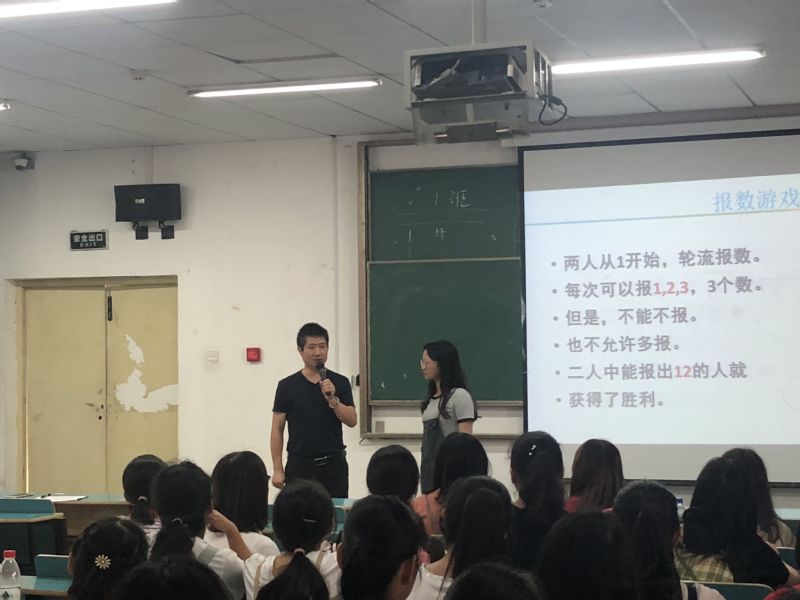讲座伊始,余老师便结合一个个数学游戏为大家展现了数学的有趣、有用、有味之处,将同学们带进了数学的神秘殿堂。如报数、移火柴、折纸8次、抓纸币、准确算出得数等游戏,同学们参与度很高,不仅乐在其中,更在烧脑、挑战自我的同时体会到了数学之趣。
