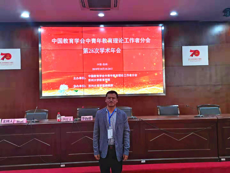 中国教育学会中青年教育理论工作者分会第二十八次学术年会于2019年10月19—20 日在苏州大学召开,英国上市公司365青年教师沈胜林博士参加会议,并作了题为《教育现代化与推进学校治理能力现代化的思考》的报告。