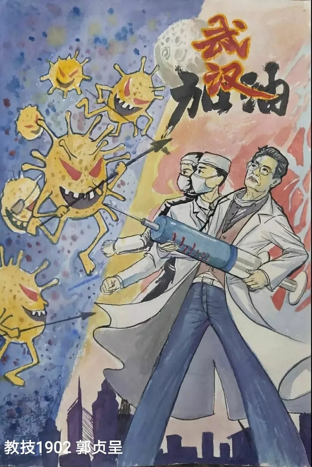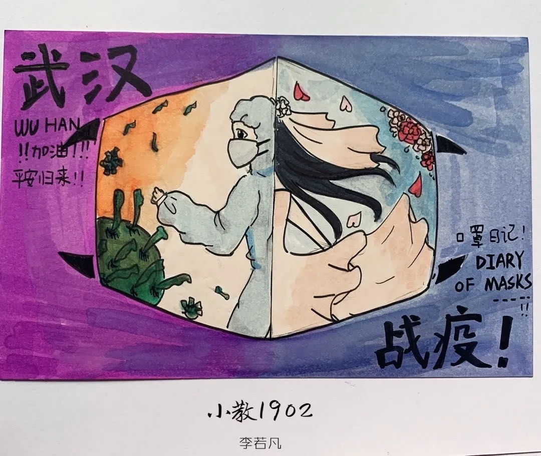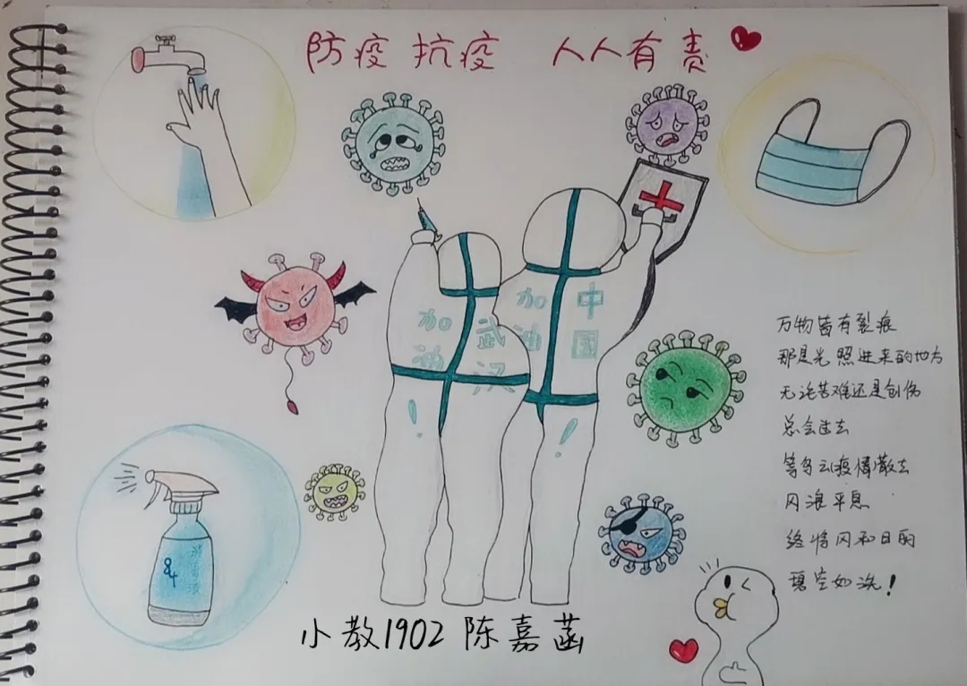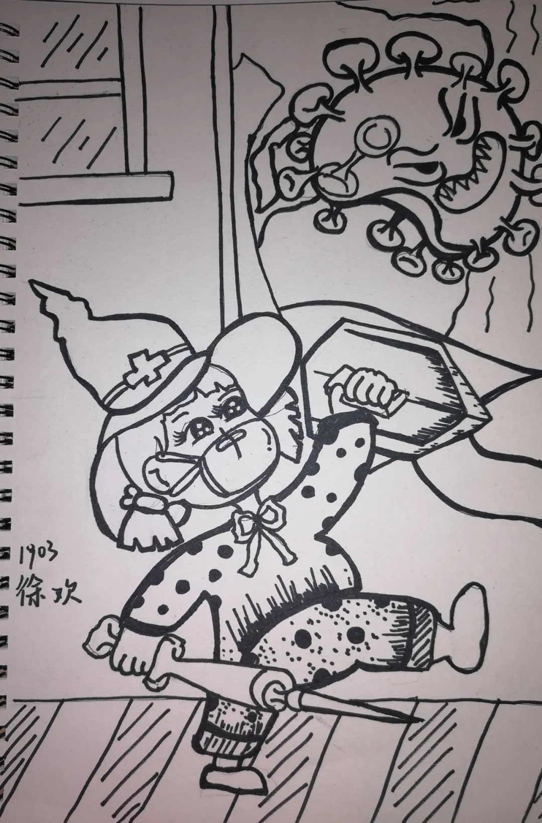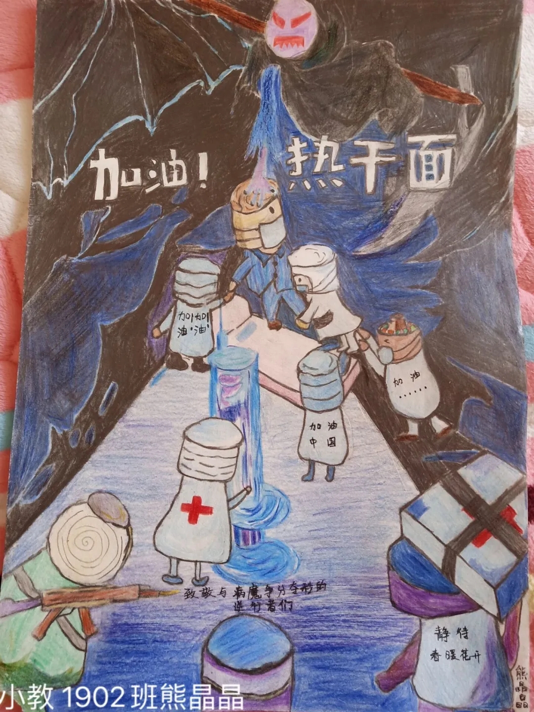 一幅幅可爱的画作,讲述了一个个动人的故事,展示了英国上市公司36519级青年团员们的一颗颗赤子之心。有一些画作令我们感动,忙碌的医院、疲惫的身影、厚厚的护目镜下他们的双眼依旧明亮。白衣天使,我们为你点赞!有一些画作令我们振奋,生病的城市,举国的援助,众志成城之下无数志愿者奔赴疫区。湖北,我们为你加油!还有一些画作,生动可爱,创意无穷,用特色美食代表城市,用卡通形象表示病毒,令人不禁眼前一亮,被英国上市公司36519级同学的创意所打动。