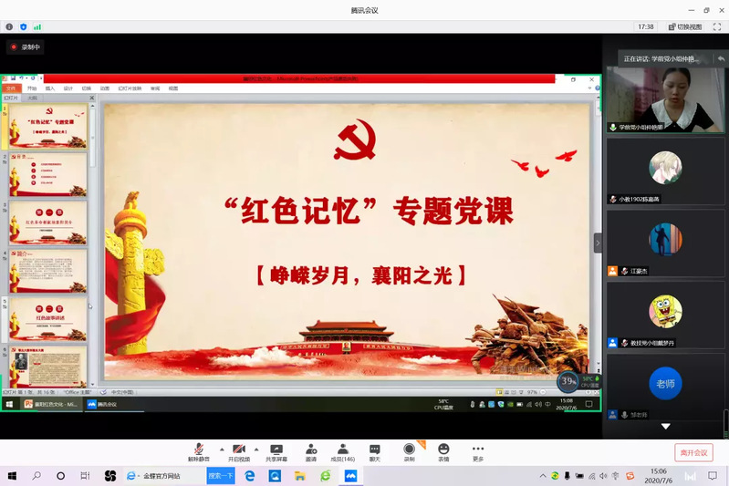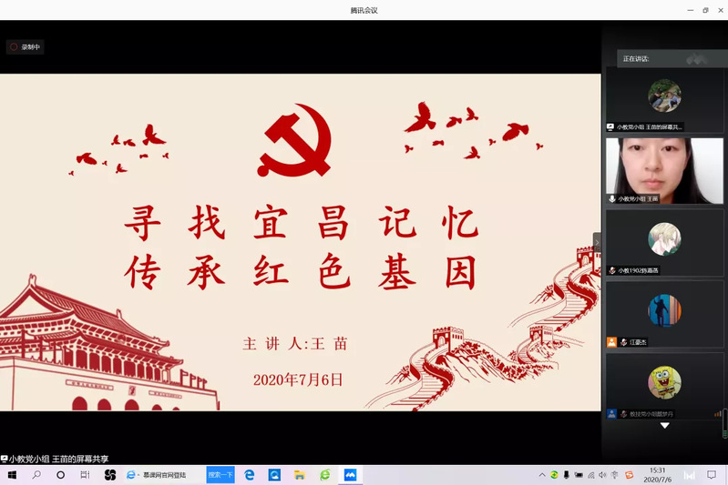 7月6日下午,学生党支部在线上开展 “红色记忆”专题党课活动,活动由学生党支部书记邹焱萍老师主持,参加活动的有全体学生党员以及120余名通过到梦空间报名参加在线听课的团员。