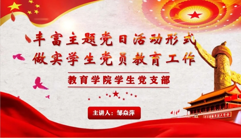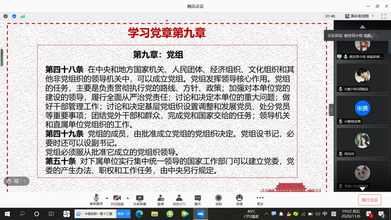 11月5日,学生党支部开展线上主题党日活动,此次活动由学生党员袁航、肖丹丹同志主持,学生党支部书记邹焱萍老师、全体学生党员参加会议。