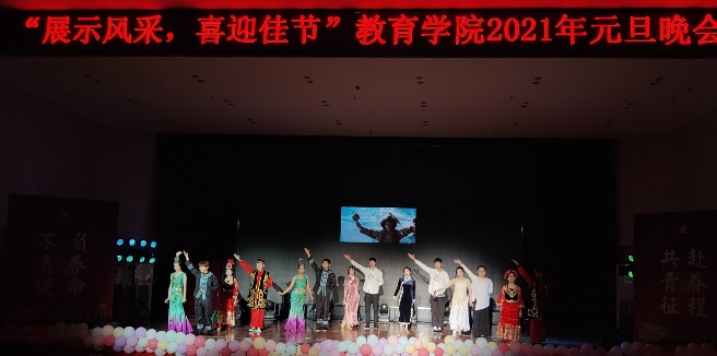 晚会上,16个节目精彩纷呈,演出人员全力以赴,为观众带来一场文艺盛宴。晚会以世纪舞团的《Era show》开场,舞者们用一段劲爆的舞蹈引燃全场,拉开了元旦晚会的序幕。晚会现场既有优美动听的《红玫瑰》,百转千回的《虞姬别霸王》,展现青春风采的《Wonderful U》,威武霸气的跆拳道《跆风》,铿锵有力的《满江红》,还有院领导老师们的激情朗诵《我们都是教院人》,彰显民族团结的《绽放》,其间穿插着有趣的情景剧《夏洛特烦恼》和《遍地英雄》,婀娜多姿的《归去来兮》、动感火热的爵士串烧《touch&给你看》,特色的配音秀《早安打工人》以及全院女教师充满魅丽的走秀《瘾》轮番上阵,晚会在院学生会全体成员的合唱《夜空中最亮的星》中落下帷幕。