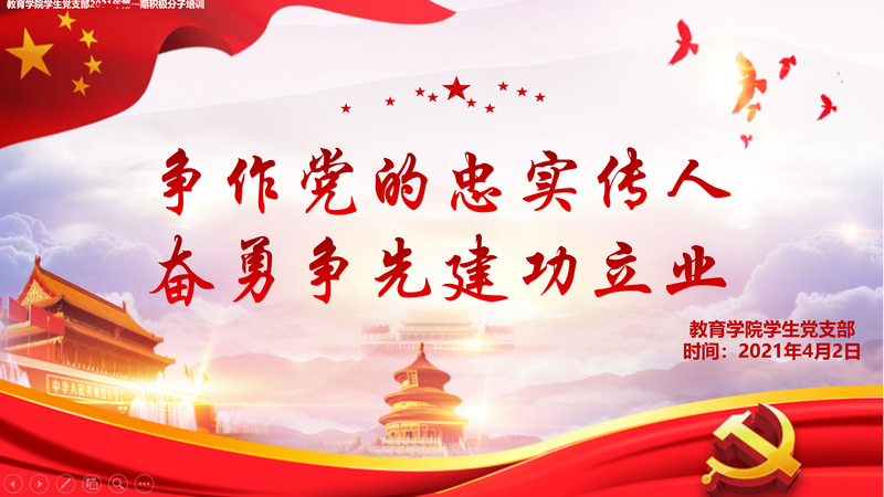 4月2日,学生党支部举行2021年第一期入党积极分子线上培训会,此次培训以“争作党的忠实传人,奋勇争先建功立业”为主题,全体入党积极分子参加。