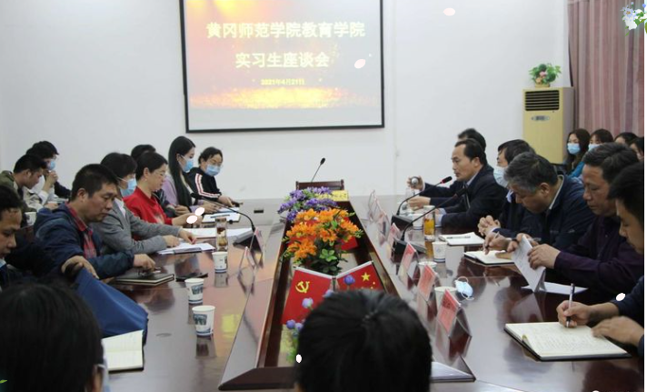 蕲春县实验小学甘志武主任从学校安排、工作指导、生活关心、目标制定四个方面的实习工作进行了反馈,对过去一个多月的实习基本工作表示认可和赞扬。