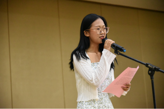 研究生代表教育管理20级研究生余杏琪同学分享了自己读研以来的三点感悟:主动、目标、行动。余杏琪同学提醒新生们,要通过不懈的努力来完善自己。