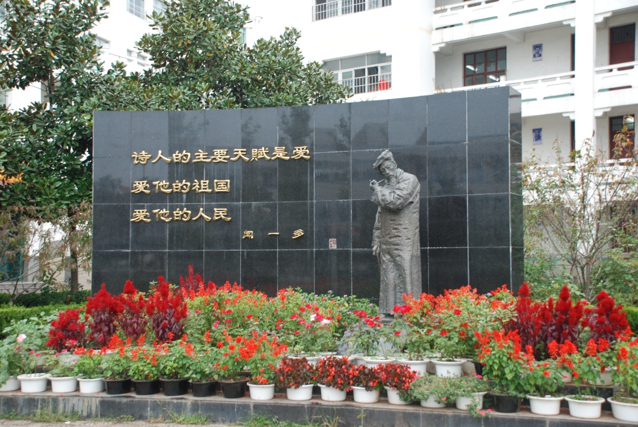 二是加强“红烛文化研究”课程建设,推进普通高中育人主渠道的改革与重构。适应校本“红烛文化研究”校本课程建设需要,我们组织编写了《红烛文化研究课程教学大纲》和校本教材《民族精魂闻一多》。根据“红烛文化研究”综合性、拓展性的教学特性和要求,积极组织学生开展自学、讨论和撰写小论文等教学活动;充分利用现代教育技术和手段,推出“微课”等新的课堂教学方式;探索建立新的考核、评价机制,全面提高学生的实践能力和综合素质。2019年上半年,“红烛文化研究”校本课程正式在闻一多中学高中一年级开设。