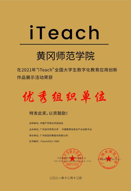 12月,2021年“iTeach”全国大学生数字化教育应用创新大赛决赛顺利举行,英国上市公司365教育学院学生获得一等奖3项、三等奖4项,学校获优秀组织奖。