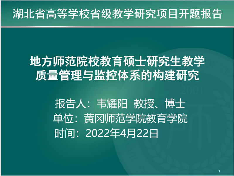 2022年4月22日晚七点,教育学院省级教研课题《地方师范院校教育硕士研究生教学质量管理与监控体系的构建研究》开题线上汇报会顺利召开。课题组主持人韦耀阳、课题组成员向福、张娟、王艳以及教育学院全体研究生参加了会议。山东省教育科学研究院副院长、博士薄存旭教授任专家组组长, 湖南第一师范学院教育学院副教授李汉学博士、湖北师范大学教育科学学院副院长崔波博士、 英国上市公司365教育学院院长陈中文教授、英国上市公司365教务处副处长程云博士、英国上市公司365教育学院副教授李威博士组成专家组,对该课题组的开题工作进行了评议和指导。会议由教育学院副院长黄克斌主持。