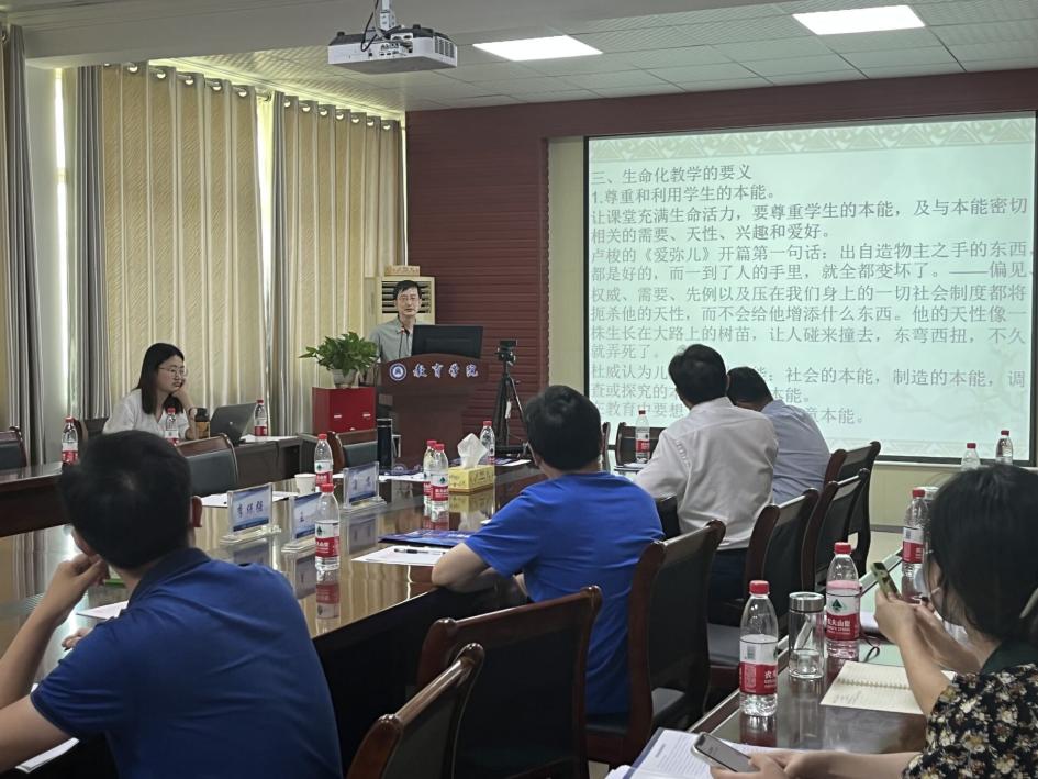 华中师范大学但武刚教授汇报的主题为“生命化教学的要义”,主要讲到课堂教学需要践行生命化教学,并从十一个方面讲解了如何激发生命活力,提升教学技能。但教授的讲座案例丰富、生动有趣。