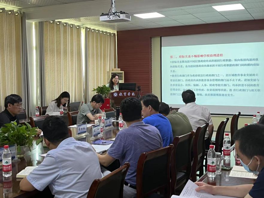 华中师范大学蒲蕊教授以“高质量发展阶段学校治理能力建设”为主题做了专题讲座。蒲教授首先从国家政策层面讲解了学校治理的概念及基本特征,然后分析了学校治理面临的挑战与困境,提出了学校治理能力建设的路径。