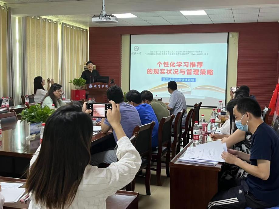 武汉大学李保强教授以“个性化学习推荐的现实状况与管理策略”为主题做了专题讲座。该专题从文献综述、现实考察、原因分析到管理策略做了深入的分析和探讨。