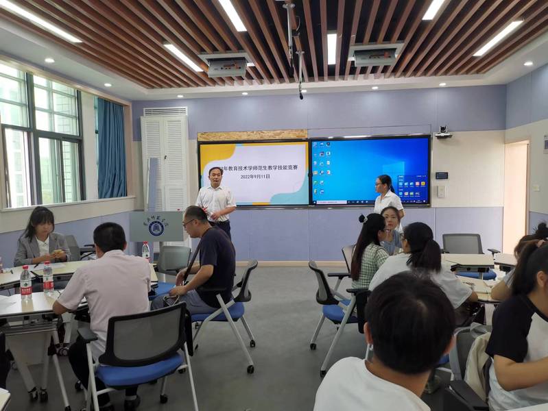 9月11日上午,教育学院在求实楼智慧教室401举行2022年教育技术学专业师范生教学技能大赛暨第十一届湖北省普通高校师范专业大学生教学技能大赛选拔赛。在前期教学视频在线海选的基础上,初选19位选手参加线下比赛。教育学院院长陈中文老师、副院长黄克斌老师、教育技术系主任马慧老师以及评委陈弘正老师、苏振扬老师、宋国柱老师、代朝霞老师、黄冈市教科院熊卜光老师等亲临现场打分并指导。