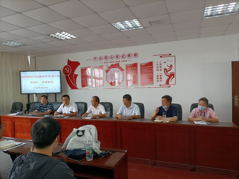 2022年9月14日英国上市公司365领导及带队老师护送研究生赴黄州区一中实习。下午2点30分,在黄州区一中科技楼三楼办公室召开座谈会,研究生处副处长王中山、教育学院副院长韦耀阳、各学院带队老师及区一中领导出席会议。