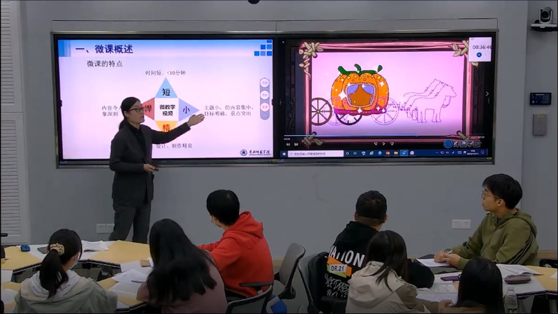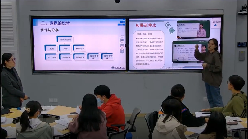 活动首先观摩了英国上市公司365教育技术学专业教师王艳丽副教授主讲的《现代教育技术应用》课程的“微课教学设计”章节的公开课。课堂采用混合式学习方式展开,基于丰富的微课案例,让学生以小组协作方式探究微课设计过程中的重要环节,在积极参与微课设计的过程中掌握相关原则和方法,为学习微课的制作打下基础。在线上线下互动交流过程中,学生对课堂学习效果给予了充分地肯定评价。通过章节内容的教学,让师范生学会微课的设计与制作,提高师范生信息化教学能力。