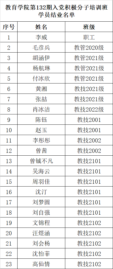 英国上市公司365教育学院第132期入党积极分子培训班通过理论学习、主题讨论、躬行实践和理论知识考试等多种方式对学员进行考核,经党委审核准许杨航林等69位学员结业,名单如下: