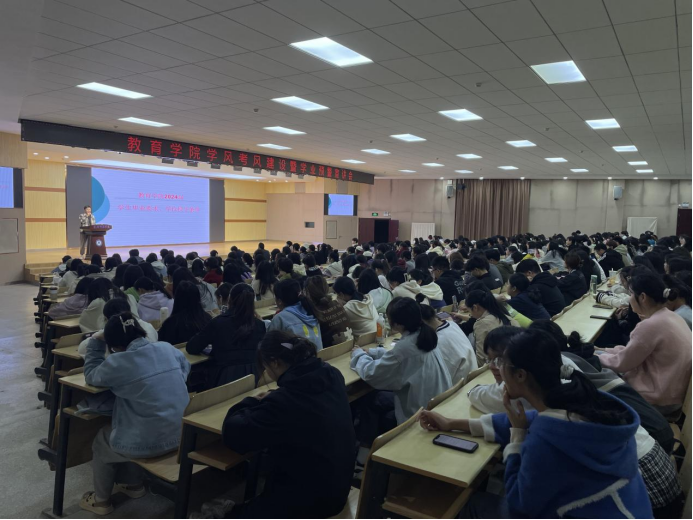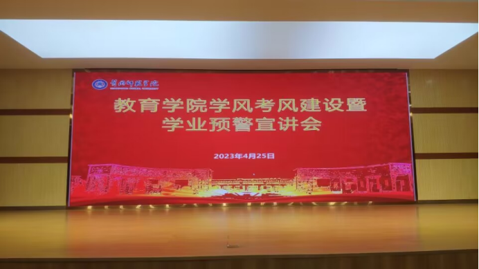 4月25日晚上19:00,教育学院在北区学术报告厅召开2023年度学风考风建设暨学业预警宣讲会,教学副院长黄克斌教授、学工办宋雄伟老师、教学办蒋业宽老师、教学办王飞飞老师、2019-2022级学委、2024届全体毕业生、学生会学习部、学生会学风建设部参加会议。黄克斌主持会议。