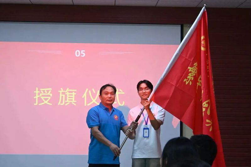 紧接着,院领导作讲话并授旗。刘杰书记向即将参加社会实践的全体师生表示亲切的慰问。他围绕习近平总书记在中国人民大学考察时的重要讲话精神,着重就开展好青年大学生社会实践提出要求。他强调,全体学生,要立足实践,用双脚丈量祖国大地;立足学习,用眼睛发现中国精神;立足服务,用耳朵倾听人民呼声;立足安全,用内心感应时代脉搏。最后,刘书记对“繁星”社会实践团队及参加出征仪式的全体师生表达了美好的祝愿。院长陈中文为实践团队授旗并作出征动员讲话。陈院长从确保“七彩假期”活动顺利进行的角度出发,在会议中提出了“三讲”要求,首先是“讲安全”,生命健康安全、财产安全、政治安全都是重中之重,需要全体学生时刻保持警惕。其次是“讲学习”,正所谓“闻道有先后,术业有专攻”,全体学生不仅要向同伴学习,更要向当地领导、老师、学生及学生家长学习。最后是“讲奉献”,全体学生要用实际行动践行志愿者精神。副书记王永胜在会议中指出,全体学生要在艰苦环境中磨练意志,在实践中检验学习效果、在实践中践行青春使命、在实践中展示黄师学子的精神风貌,用心服务、用情感悟、用爱传递。最后,出征仪式在嘹亮的校歌声中结束。
