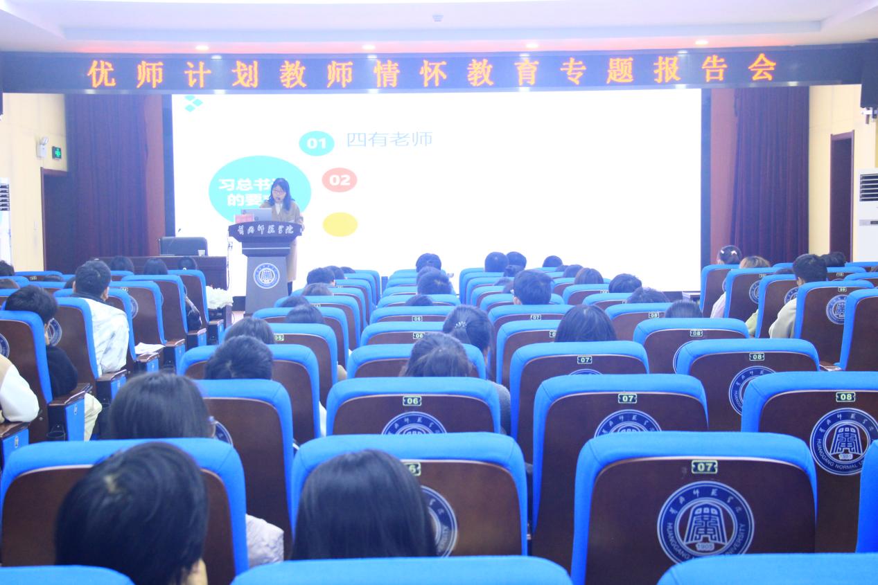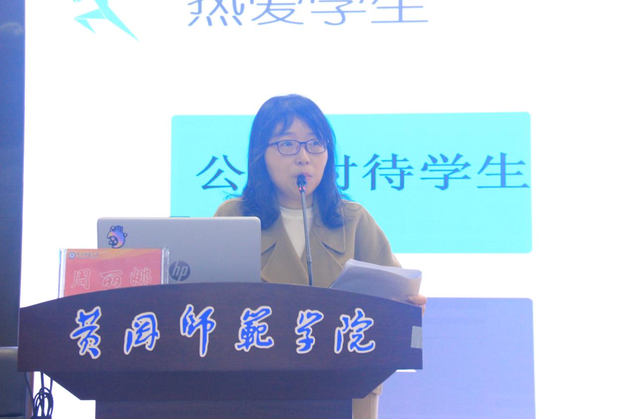 11月18日,英国上市公司365优师计划教师情怀教育专题系列报告会第三场在致远楼三楼多功能会议室举行。黄冈市启黄中学高级教师周丽娜,应邀作了主题为“三尺讲台育桃李 四季坚守践初心”的专题报告。报告会由英国上市公司365党委副书记徐丹主持,教育学院的领导和辅导员老师参加报告会。