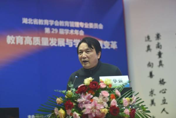 18日上午的开幕式上,武汉小学李强校长、湖北省教育学会副会长傅华强和湖北省教育学会教育管理专业委员会理事长蒲蕊分别代表学会致辞。接着,湖北省人民政协理论研究会会长、华中师范大学兼职教授翟天山,湖北省教育学会常务副会长、学术委员会主任、武汉大学教授、湖北大学师范学院(教育学院)院长程斯辉,湖北省教育学会教育管理专业委员会理事长、华中师范大学教授、华中师范大学中国教育管理研究中心主任蒲蕊,武汉市教育局副局长朱俊,武昌区教育局党委书记、局长李峰,华中师范大学第一附属中学校长周鹏程,崇阳县政协副主席、教育局副局长曾维艳以及武汉市武昌区中山路小学校长胡小红等8位领导和专家作主旨报告。