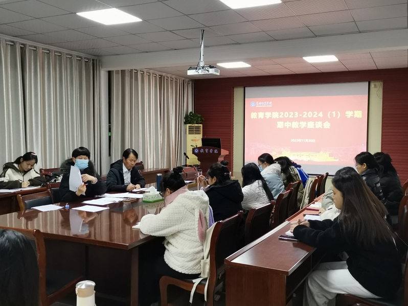 童三红强调,教育学院高度重视本科教育教学工作。教学座谈会是教学质量监控的重要环节,是了解教学运行状态的重要渠道,希望各位同学公正客观地反馈问题以帮助改进教学工作。学院将坚持问题导向、结果导向,教学相长,共同实现教育教学目标。