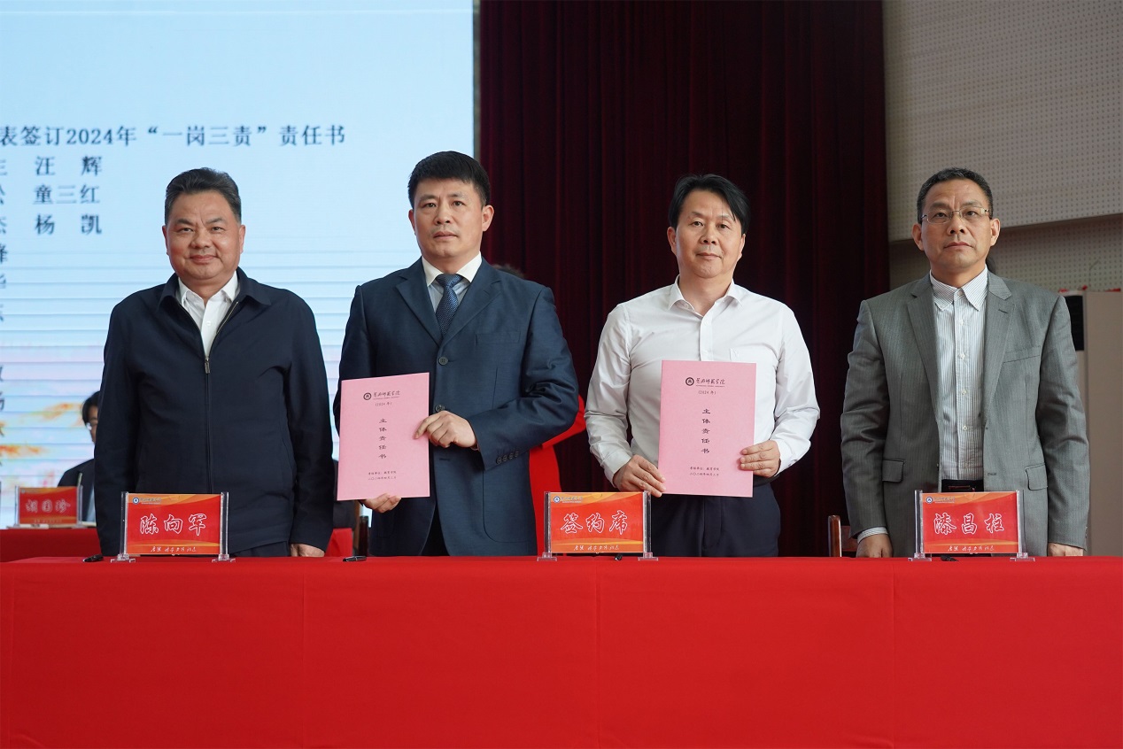 4月3日下午,学校在厚德楼学术交流中心召开2024年度落实“一岗三责”推进会。校党委书记陈向军,党委副书记、校长漆昌柱等全体校领导出席会议。