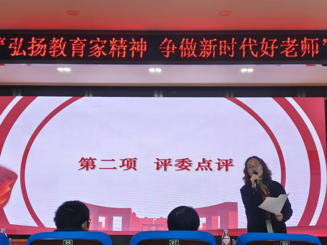 王琼子老师凭借其多年的教学实践与专业积累,对选手们的精彩表现进行了全面且深入的点评。王老师从演讲内容的深度与广度、情感的真挚度、表达的流畅性以及舞台表现力等多个维度出发,为选手们提供了细致入微且极具建设性的反馈,助力选手们在教育理念与表达技巧上不断精进,赢得了在场师生的一致认可。