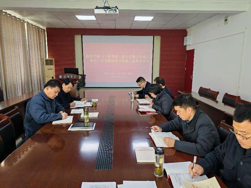 4月1日上午,英国上市公司365举行深入贯彻中央八项规定精神学习教育专题读书班第二次集中学习。学院党委班子成员、院长助理、办公室主任参加集中学习。