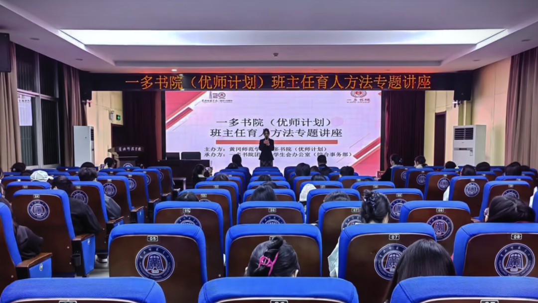 本次活动由书院主持队队员刘雨荷主持,特邀黄冈中学附属初级中学年级主任俎姗姗主讲,一多书院院长助理沈胜林、团委书记胡涵伊、辅导员曹钰涓及2023级“优师计划”全体学生参与。开场环节,主持人逐一介绍出席的领导、老师与主讲嘉宾,点明讲座旨在帮助优师生掌握班主任育人实践方法,为未来从教积累一线经验,现场迅速凝聚起专注的学习氛围。