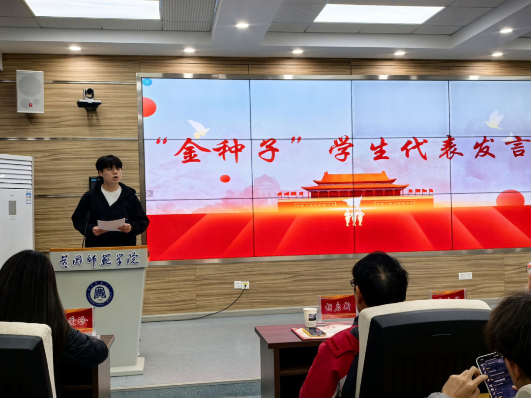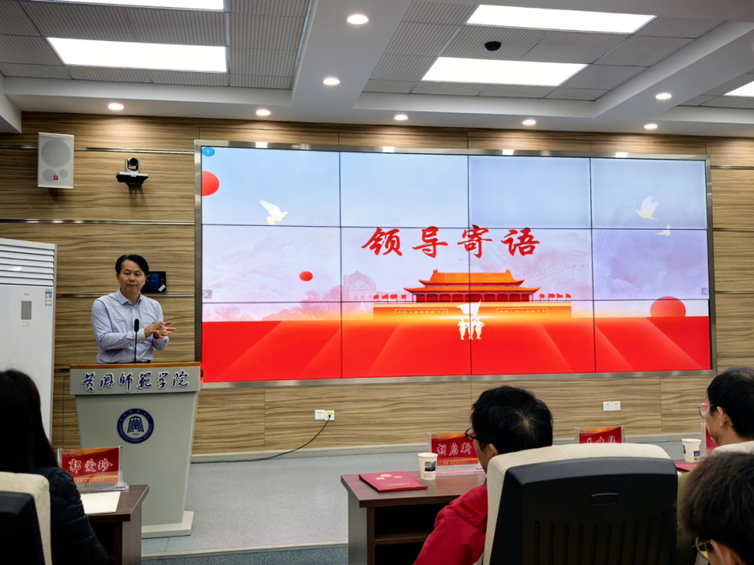 接着,学校一多书院首任院长童三红在发言中提到,此次“金种子·红烛赋能计划”是链接基础教育一线的重要举措。他结合当前就业形势、学生成长现状等,强调师范生需适应多学科教学、强化综合能力,并宣布将每周固定开展专业训练,邀请黄冈中学、明珠学校等一线名师指导,帮助学生提升教学实践能力。