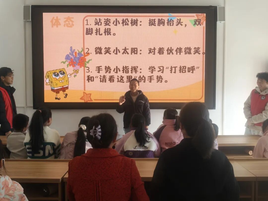 活动伊始,志愿者们通过系统的口部操和体态训练,为孩子们打下扎实的表达基础。“小蛤蟆鼓气”“小木鱼张嘴”等趣味口部操让孩子们在欢笑中活动唇舌,而绕口令训练《打枣歌》则帮助他们在韵律中掌握气息控制。与此同时,志愿者们悉心指导孩子们塑造小主播的专业仪态——“站姿小松树”让身姿挺拔,“微笑小太阳”让表情生动,“手势小指挥”让动作得体。发音与体态的同步训练,使孩子们在寓教于乐的互动中初具小主播风范。