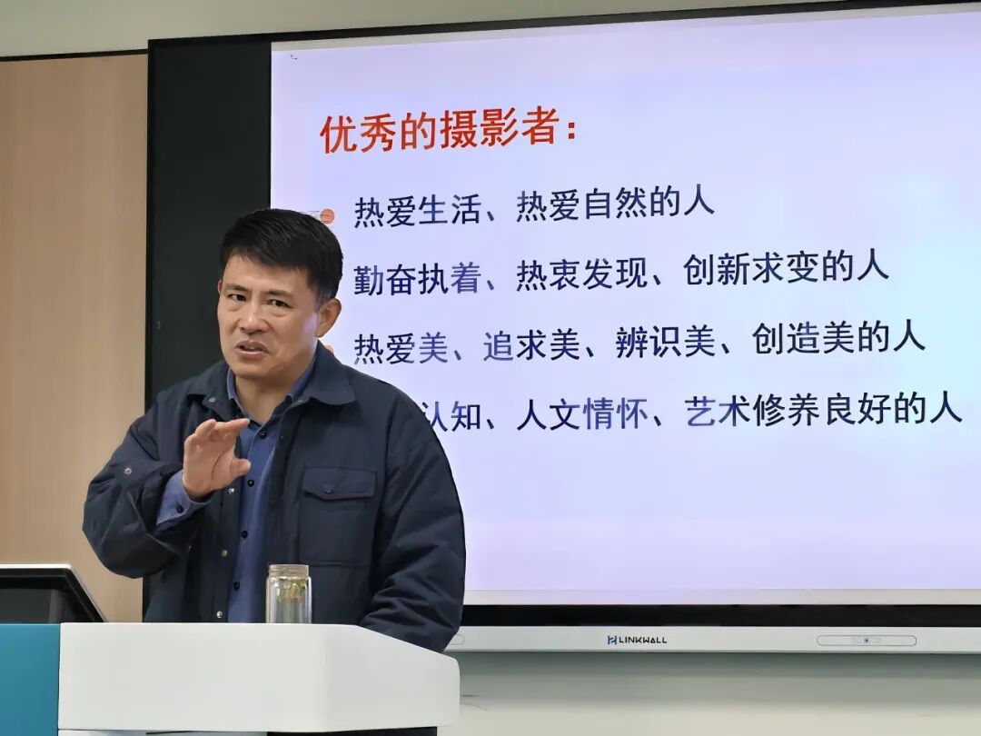 在摄影漫谈中,钟书记以"欣赏别人就是庄严自己"为理念,引导学生理解摄影者需具备的观察力与人文情怀,鼓励将视觉表达与文字创作深度融合。本次课程通过理论讲解与实践指导相结合,助力学生提升综合表达能力,受到学员一致好评。