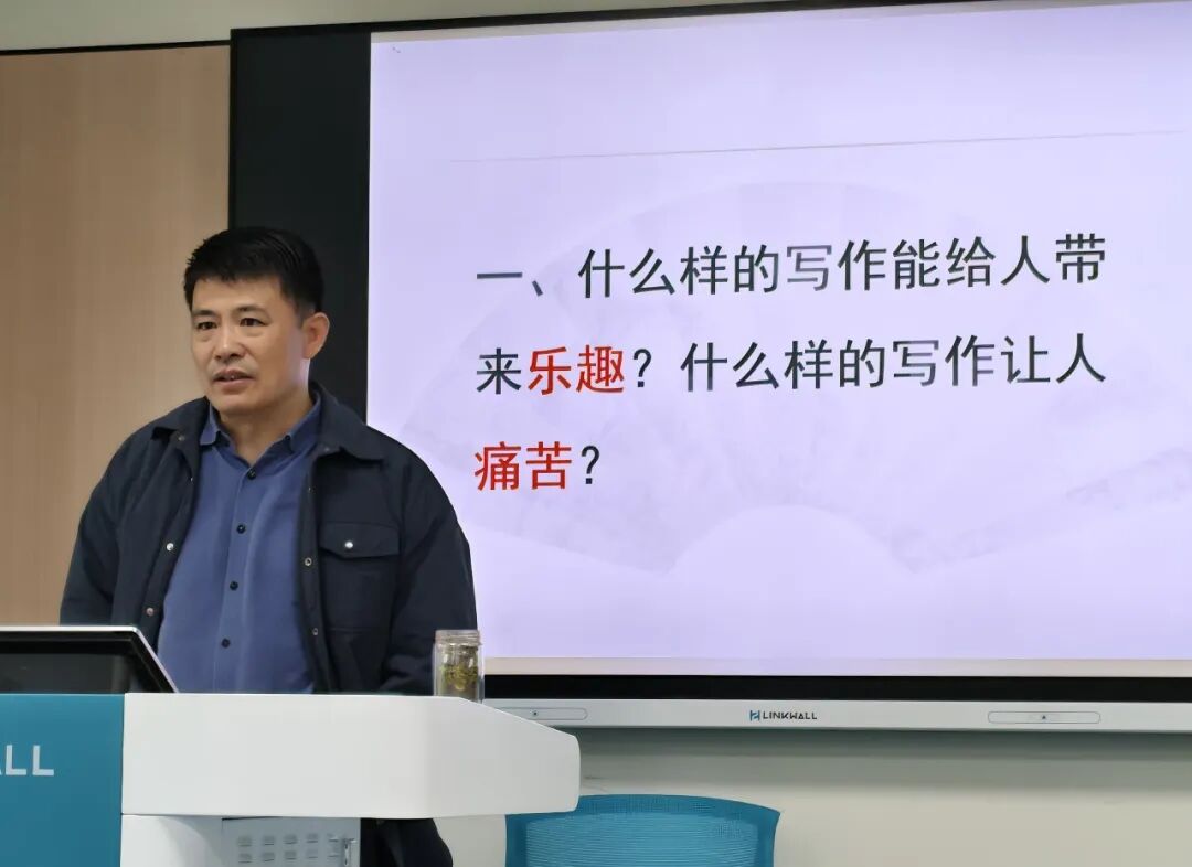 写作漫谈环节,钟书记从写作乐趣与痛苦的辩证关系切入,强调精神放松、思维活跃的创作状态,系统讲解了知识结构、社会认知等核心素养,以及"真、情、思"三位一体的写作技巧,提出通过"写作-再写作"循环实现能力进化的路径。