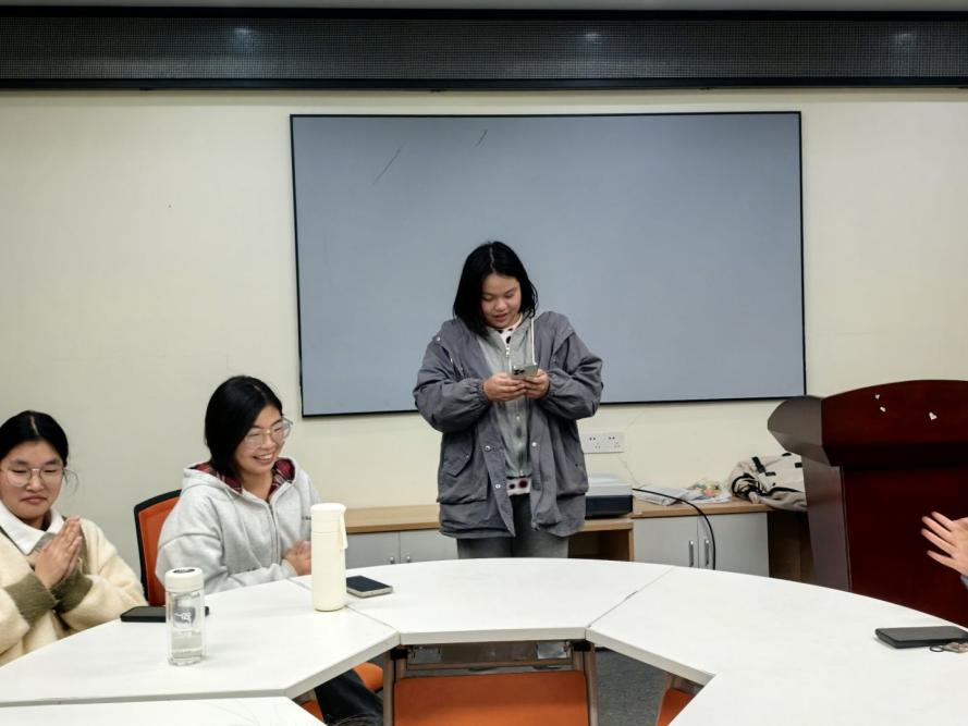 活动伊始,同学们自由组队,围绕关键词进行接力组句。随着句子不断加长,现场氛围时而紧张、时而欢笑。失败的小组推选代表上台表演才艺,不仅化解了“小遗憾”,也迅速拉近了彼此距离,锻炼了专注力与反应力。