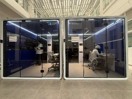 AI智能实训静音舱的空间结构由板书区域、大屏区域、智能锁、摄像区域、Al录播控制区域、互动指导区和休息区组成。Al录播控制区域录制控制内置AI模块,自动采集师范生模拟教学数据,实现智能现场诊断与分析。AI智能实训静音舱结合手机和系统平台高效完成教学和训练任务,并可以在人工智能支持下对教学实训提供科学的指导和帮助,有效提升师范生教学技能。