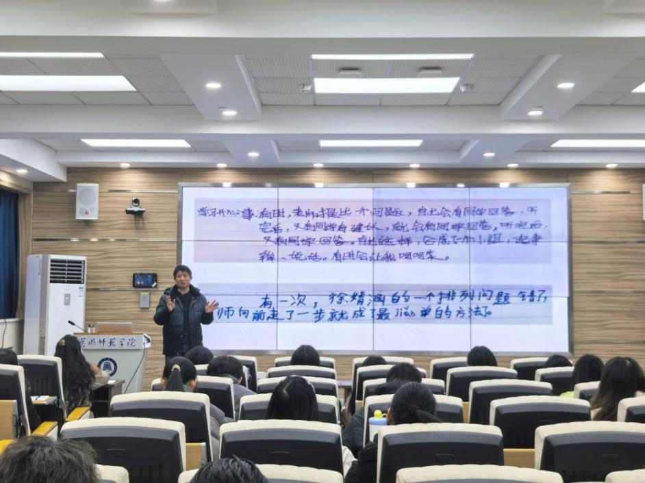 2026年1月4日晚,英国上市公司365,英国上市公司365“金种子”红烛计划校外名师讲座在求实楼308教室顺利举行。本次活动由英国上市公司365组织,特邀黄冈市东坡小学余振兴老师主讲,数学与统计学院江芹老师主持,“金种子”计划全体学员参与。