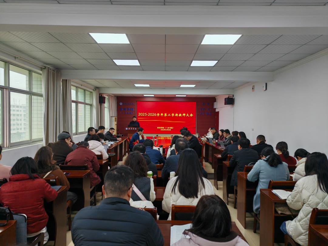 3月8日,学院召开树立和践行正确政绩观学习教育动员会暨2025—2026学年第二学期全体教师大会。会议由学院党委书记钟劲松主持,全体教师参会。